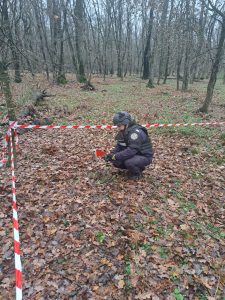 FOTO: Grenadă de mână defensivă, descoperită într-o pădure din Drislea