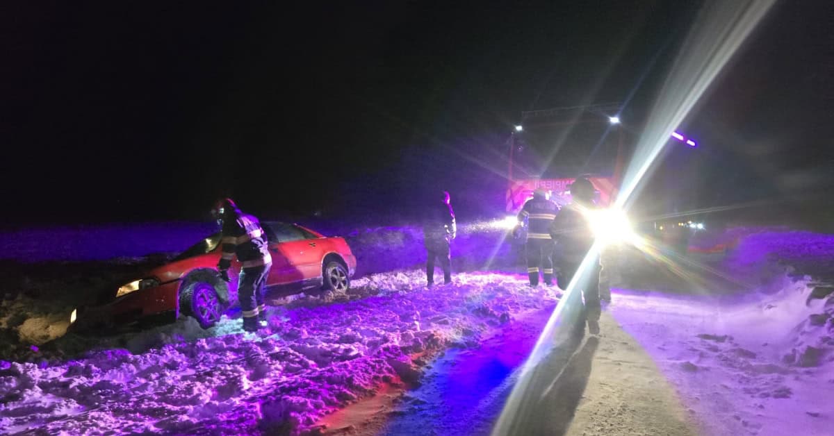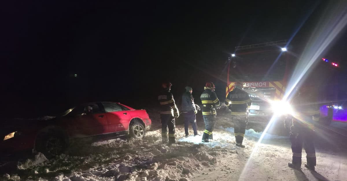 Șapte intervenții ale salvatorilor, astăzi în județul Botoșani: Mașini blocate în zăpadă, ambulanță oprită și copac doborât de vânt