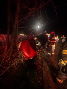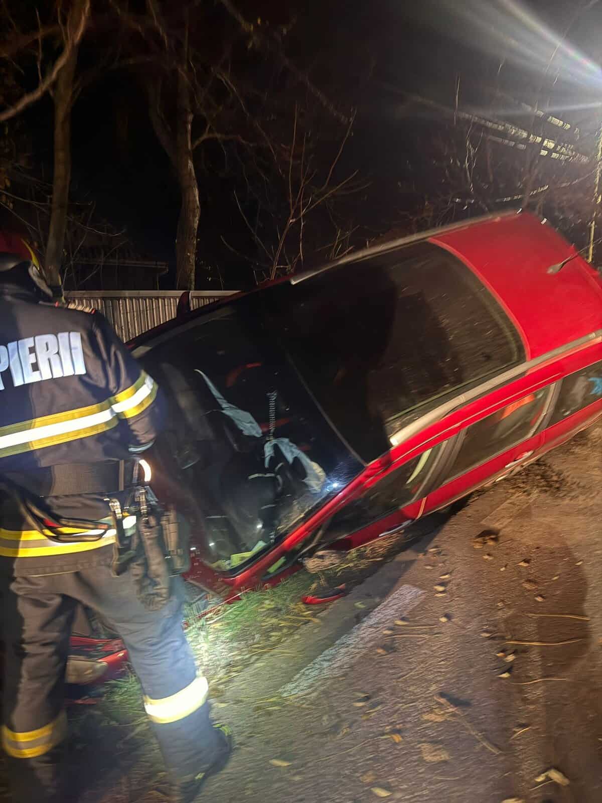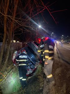 FOTO: Accident la Vorona. O mașină a intrat în șanț, șoferul a primit îngrijiri la fața locului