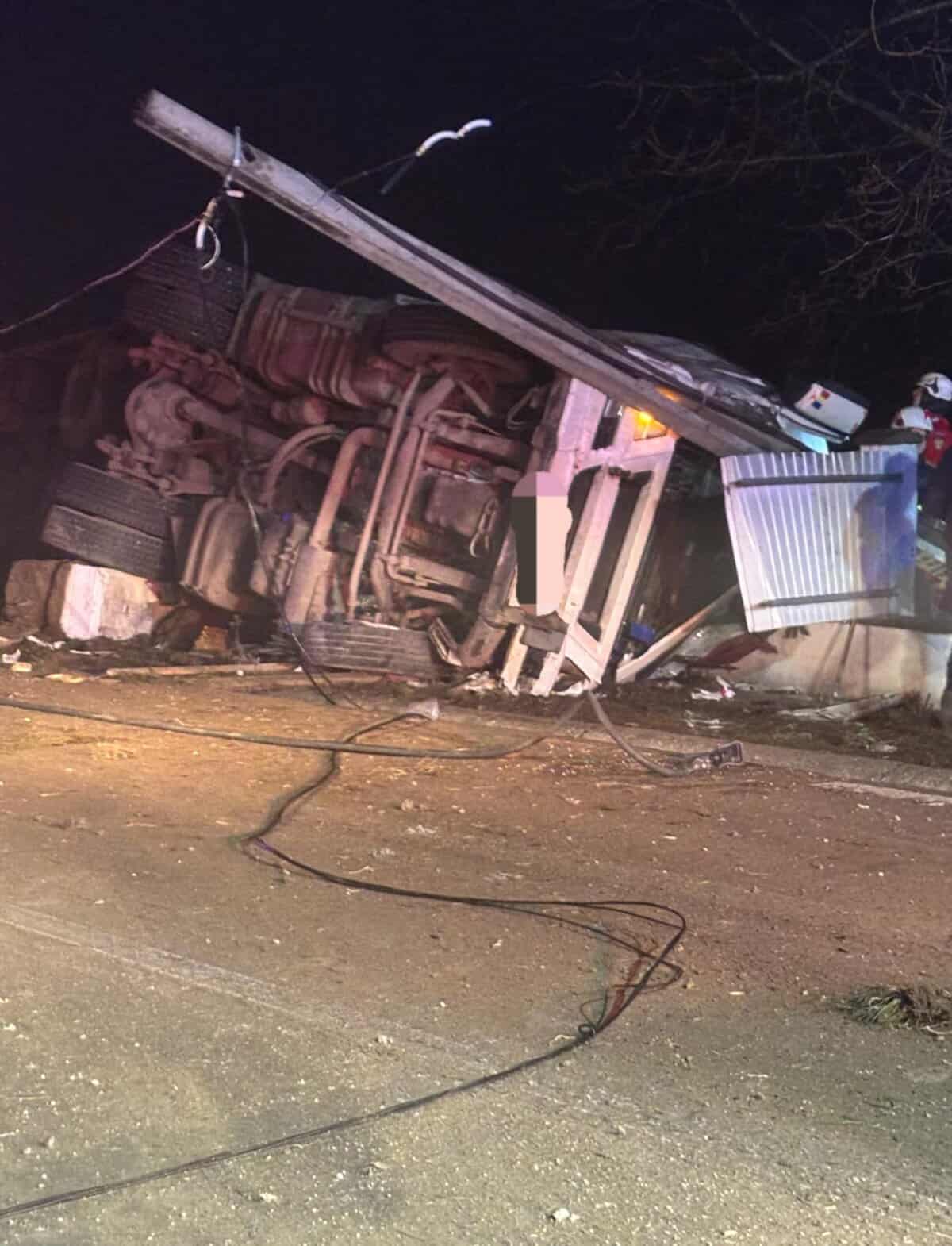 Accident la Vorona! Un tir s-a răsturnat după o manevră a șoferului care a rămas încarcerat
