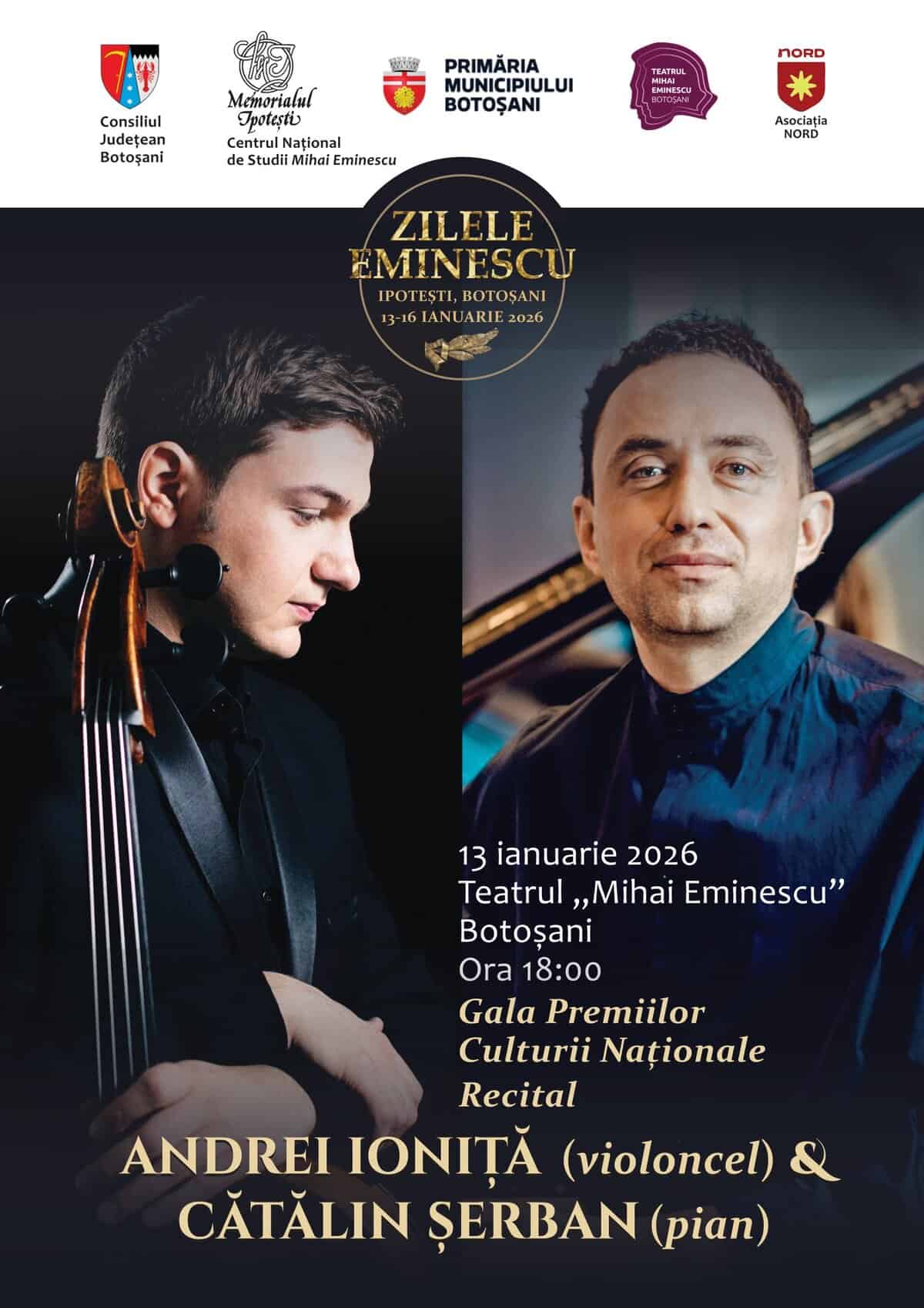 Zilele Eminescu: Recital de muzică clasică – Andrei Ioniță (violoncel) & Cătălin Șerban (pian) / (Germania)