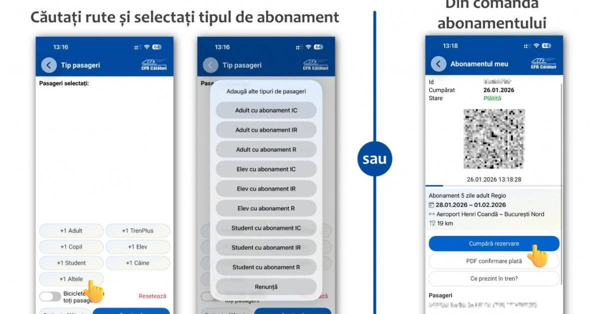 CFR Călători permite rezervarea locurilor pentru abonamente direct din aplicația mobilă. Nouă funcționalitate în aplicația CFR