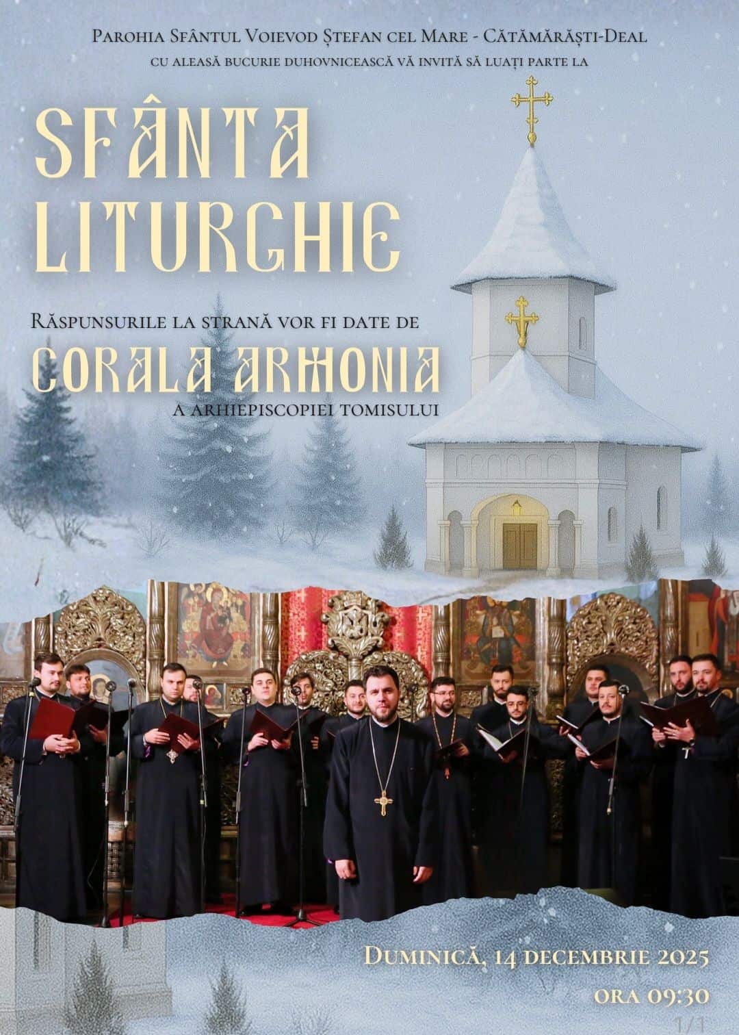 Liturghie cu trăire și cântare îngerească la Cătămărăști-Deal: Corala „Armonia” va răspunde la strană