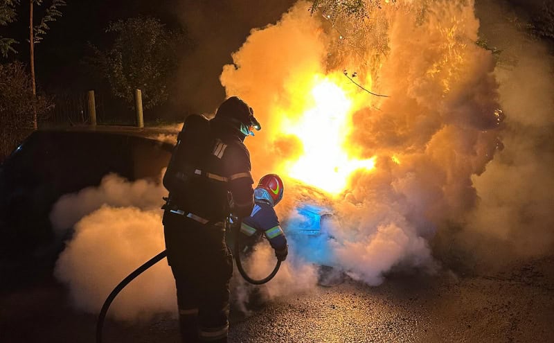 Autoturism mistuit de flăcări la Leorda – pompierii au intervenit contracronometru