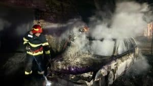 VIDEO: Incendiu de proporții la Albești. Un service auto, o vopsitorie și un depozit de materiale combustibile s-au făcut scrum