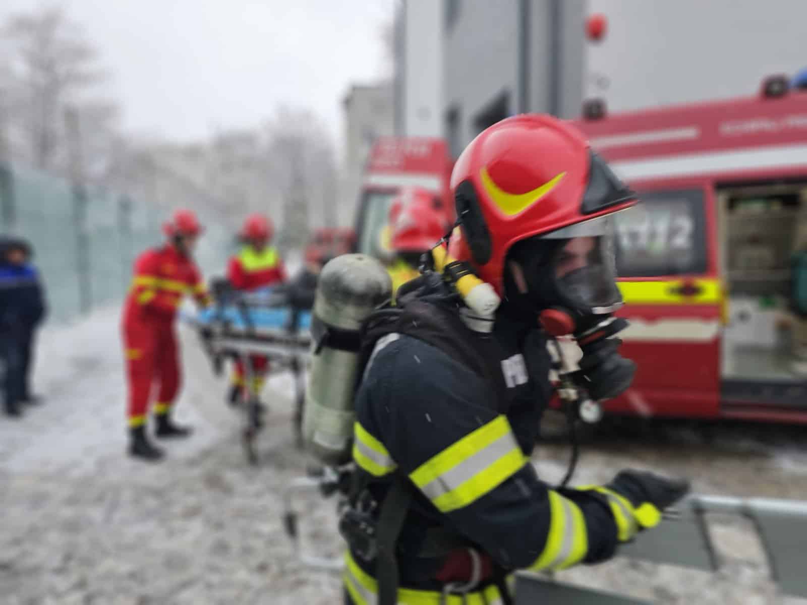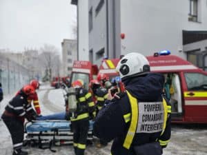 Pentru ca exercițiul să fie cât mai aproape de realitate, a fost simulată salvarea a trei elevi din două săli de clasă.