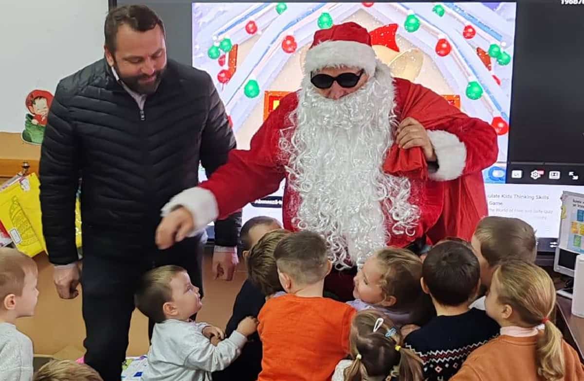 Avrămeni, sub magia Crăciunului: Primarul George Telișcă a adus un Moș Crăciun generos, mare și bun în școlile din comună