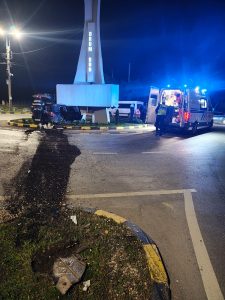 FOTO: Doi bărbați au ajuns la spital după un accident într-un sens giratoriu din municipiul Botoșani