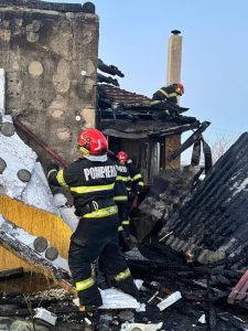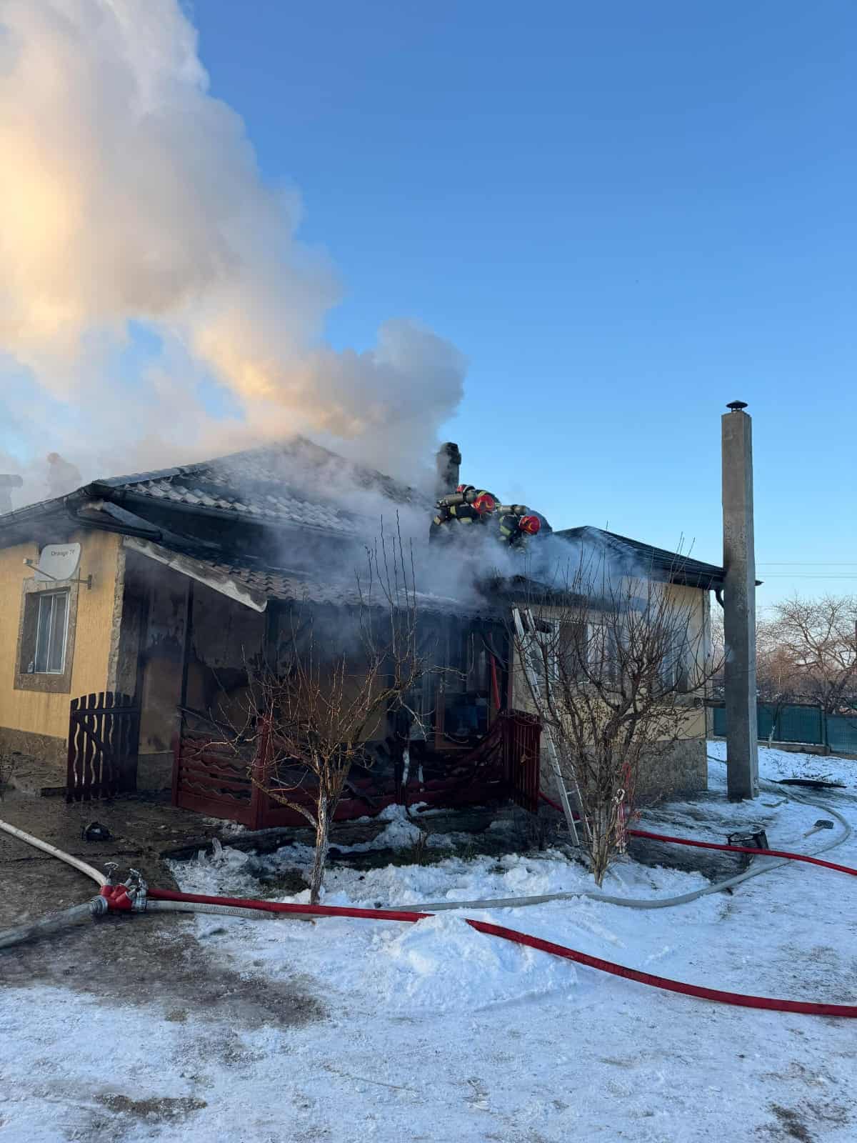 FOTO: Un incendiu a izbucnit, luni, într-o gospodărie din localitatea Românești din cauza unui coș de fum neprotejat termic