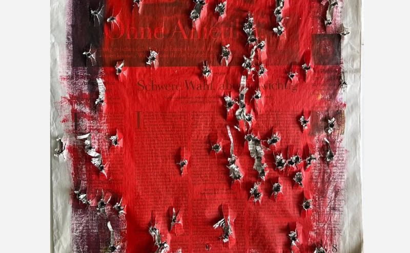 Expoziția este alcătuită din picturi suspendate lucrate în tehnica acrilic pe ziare presate, împușcate cu pistol de calibrul 9 mm, prin care, artistul basarabean Pavel Brăila ilustrează, ororile, tensiunile și amplificarea agresiunii conflictelor care au loc în lume. Ideea de la care a pornit artistul este că, pe computer sau telefon, oamenii văd știrile, însă, de la un punct, nu mai fac față volumului acestora. „Știrile vin atât de repede… Pe măsură ce citește ceva, a trecut, mereu e altceva nou. Evenimentele se derulează atât de repede peste tot în lume”, spune artistul.