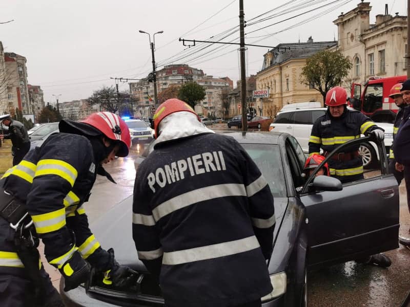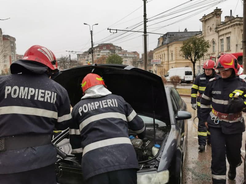 FOTO: Mașină cuprinsă de FLĂCĂRI pe o stradă din municipiul Botoșani