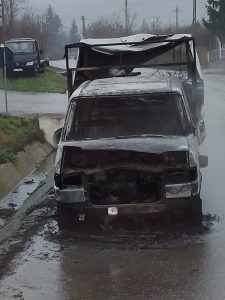 FOTO: O mașină încărcată cu fier vechi a luat foc în mers pe un drum din Dracșani