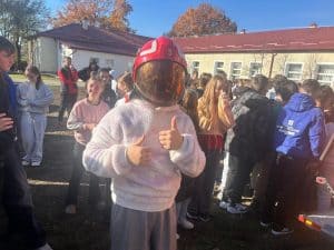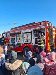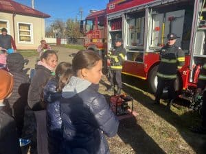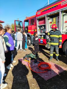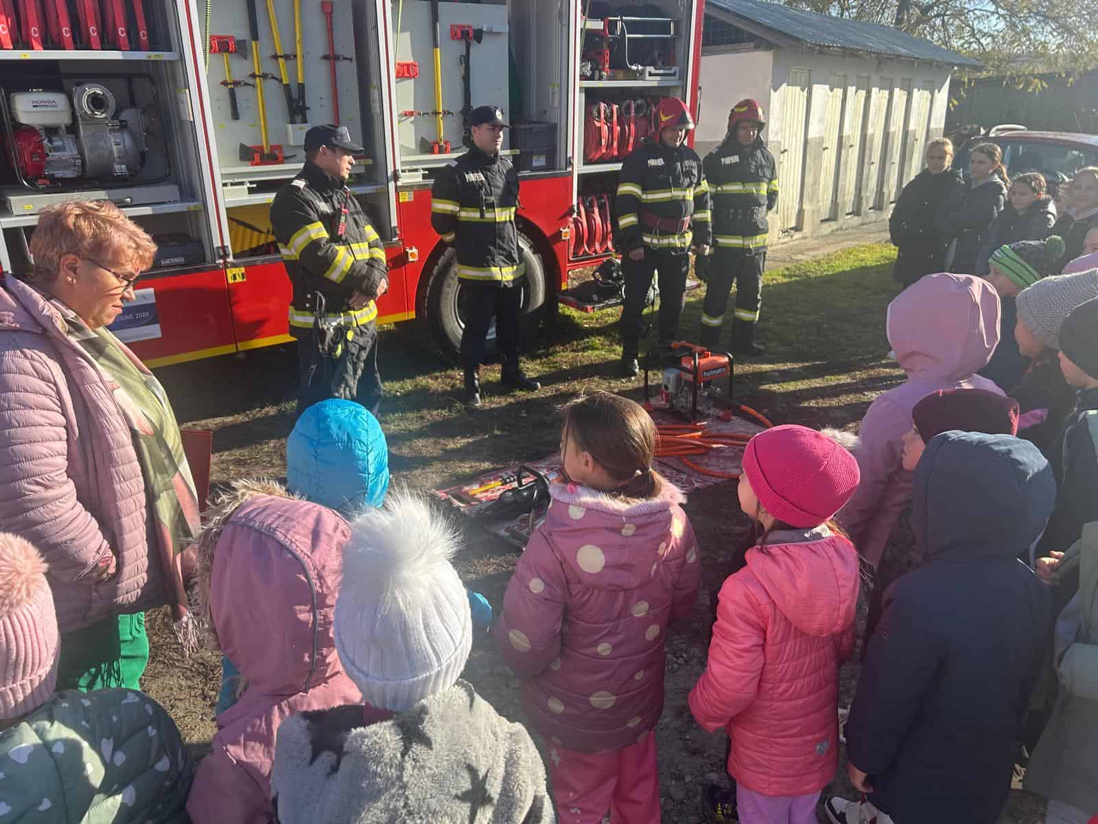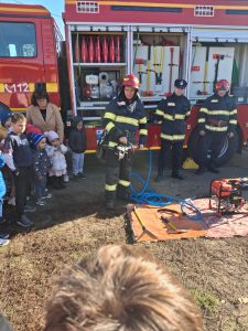 La finalul exercițiilor, copiii au avut ocazia să vadă îndeaproape o autospecială folosită în misiunile operative, au probat echipamentele de protecție utilizate de pompieri și au aflat cum se folosește fiecare accesoriu în parte.