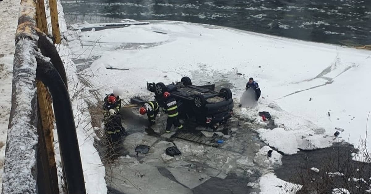 Lângă noi: Mașină răsturnată în albia râului Bistrița, la Suceava. Șase persoane, între care patru copii, duse la spital