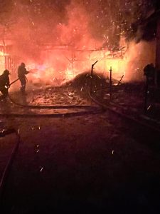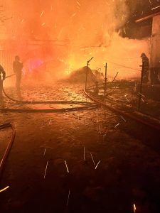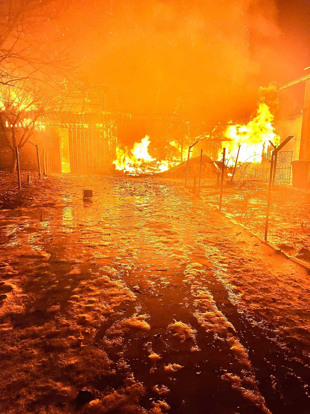 FOTO: Incendiu violent la Șendriceni! O clădire în care se aflau adăpostul pentru animale, depozitul de furaje și o magazie a fost cuprinsă de flăcări