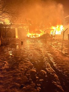 Un incendiu violent s-a produs, noaptea trecută, într-o gospodărie din localitatea Horlăceni. O clădire în care se aflau adăpostul pentru animale, depozitul de furaje și o magazie a fost cuprinsă de flăcări.