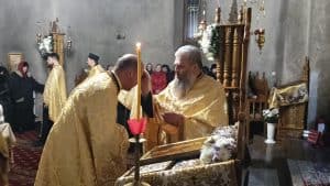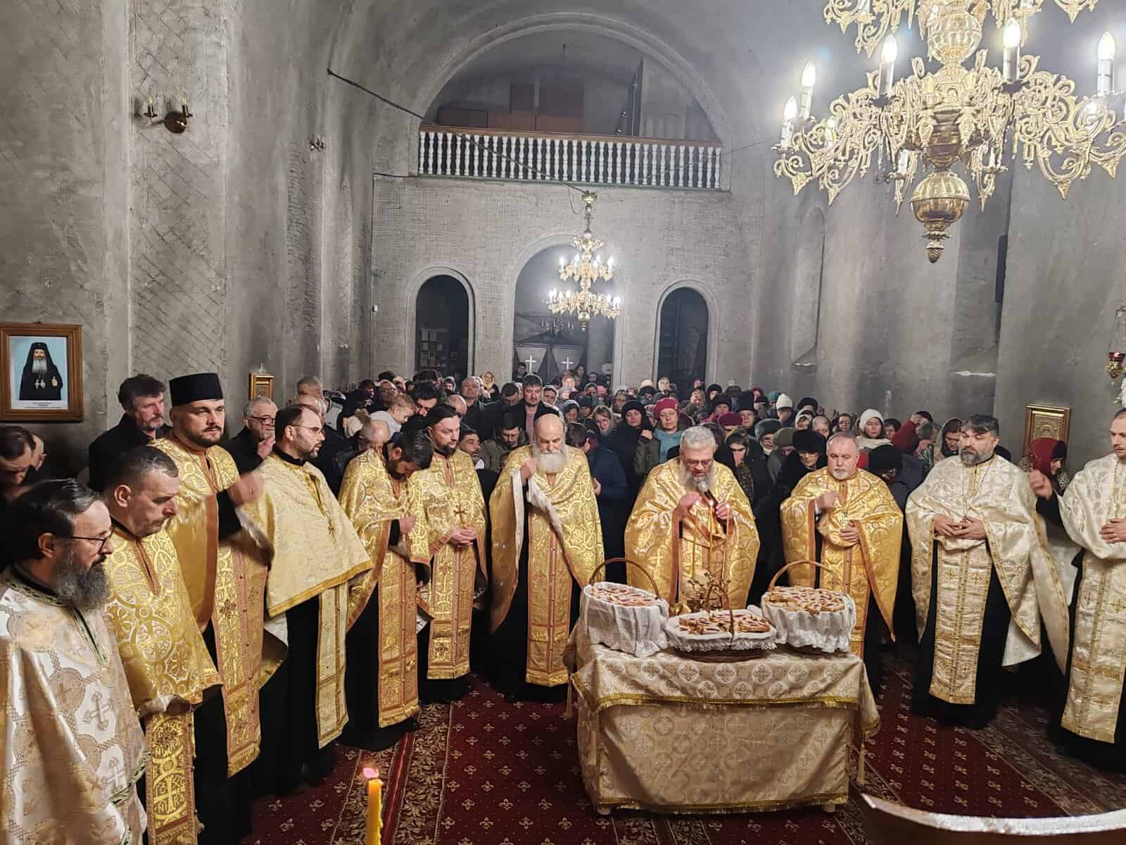 Răspunsurile la strană au fost oferite de psaltul Simon Petru Mihai și de Cristian Lucan, cărora li s-a alăturat părintele Dumitru Anușcă, deosebit cunoscător al muzicii psaltice. La finalul popasului duhovnicesc, părintele prototop a binecuvântat prin rugăciunea Litiei, pâinea, grâul, vinul și untdelemnul, elemente folosite în cultul divin public. Părintele i-a cerut lui Dumnezeu, prin rugăciunea de binecuvântare a acestor prinoase, să le înmulţească „în sfânt locaşul acesta, în oraşul acesta, în ţara aceasta şi în toată lumea Sa”. Pâinile au fost stropite cu vin şi împărţite credincioşilor, după sfârşitul slujbei.