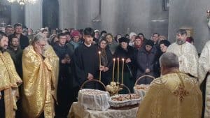 Marți dimineață, în ziua de prăznuire a Sfântului Haralambie, sărbătoarea a continuat cu Utrenia și Sfânta și Dumnezeiasca Liturghie, săvârșită în sobor, o slujbă emoționantă și pătrunzătoare. Părintele Ioan Alupoaiei a fost pomenit de câteva ori, lăsând să cadă pe obrazul multor enoriași o umbră de tristețe. Ca și în seara care a precedat sărbătoarea, biserica a fost plină de credincioși, veniți din toate părțile orașului pentru a-l cinsti pe Sfântul Haralambie, făcătorul de minuni. La final, a urmat o slujbă de pomenire a celor adormiți, după care gospodinele din parohie și-au demonstrat talentul culinar, oferind creștinilor celor prezenți tradiționalele sărmăluțe.