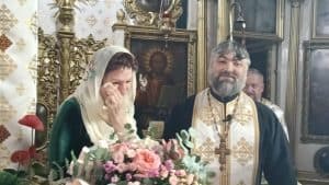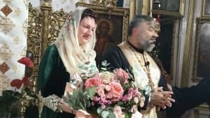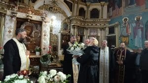Credincioșii parohii au oferit la final un superb buchet de flori, preoteasa Maria fiind copleșită de bucuria momentului.