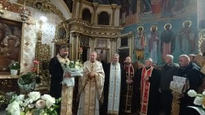 Și știm foarte bine că părintele prin experiența sa pe care a acumulat-o lucrând o vreme îndelungată la penitenciar prin pregătirea sa, prin întâlnirile pe care le a avut cu mai mulți preoți, cu mai multe cadre și militare și civile, a venit aici în parohie cu gând a lucra frumos, de a pune rânduială și de a da sens tuturor creștinilor și de a îndemna oricât de greu a fi, trebuie să rămânem pe calea moșilor și strămoșilor noștri să fim feriți de fel și fel de invitații care vin dincolo de hotarele țării noastre, dincolo de credința noastră ortodoxă, dincolo de sfințirea noastră românească, chipurile ca să ne dezbină, să ne împarte știm foarte bine că Mântuitorul a spus clar când s a rugat și în Ghetsimani cum vedem în Evanghelia Ioan capitolul 17 ca toți să fie una.