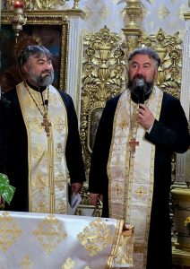 „Cred că mai avem mult de lucru și cred că în orice parohie este de lucru la acest aspect. Pentru că chiar dacă noi astăzi părem mulți aici în Sfânta Biserică, în jurul acestei biserici, în parohia aceasta, sunt mult mai mult, mult mai mulți oameni, mult mai multe suflete care așteaptă să fie cercetate ca să deschidă ușa inimii lor pentru slujitorii bisericii. Cred că aceasta este lucrarea cea mai importantă care de aici ne este pusă înainte părinte Ciprian și așa pentru că nu vreau nici eu să lungesc mult cuvântul pentru că eu trebuie să adresez la final cuvântul de bun venit în numele parohiei a credincioșilor din această parohie vă asigurăm de respectul și prețuirea noastră de toată dragostea și ca și paroh vă cer și vă îndemn să aceeași dragoste și respect să le arătați enoriașilor din această parohie iar ca semn de Bun venit.