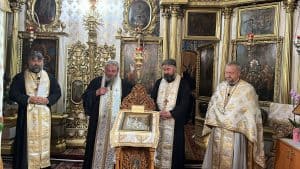 Părintele paroh al Bisericii Duminica Mare, pr. Florin MArcu, l-a primit pe părintele Ciprian cu un sfat, oferindu-i un dar de suflet.