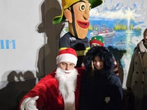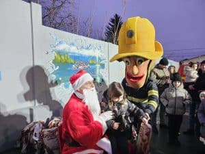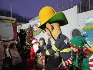 Împrietenindu-se pe loc, cel mai cunoscut pompier din lume și cel mai simpatic bătrânel au împărțit, împreună, binemeritatele cadouri copiilor care au fost cuminți tot anul — dar nu înainte ca fiecare micuț să ofere un colind, o poezie sau o urare.