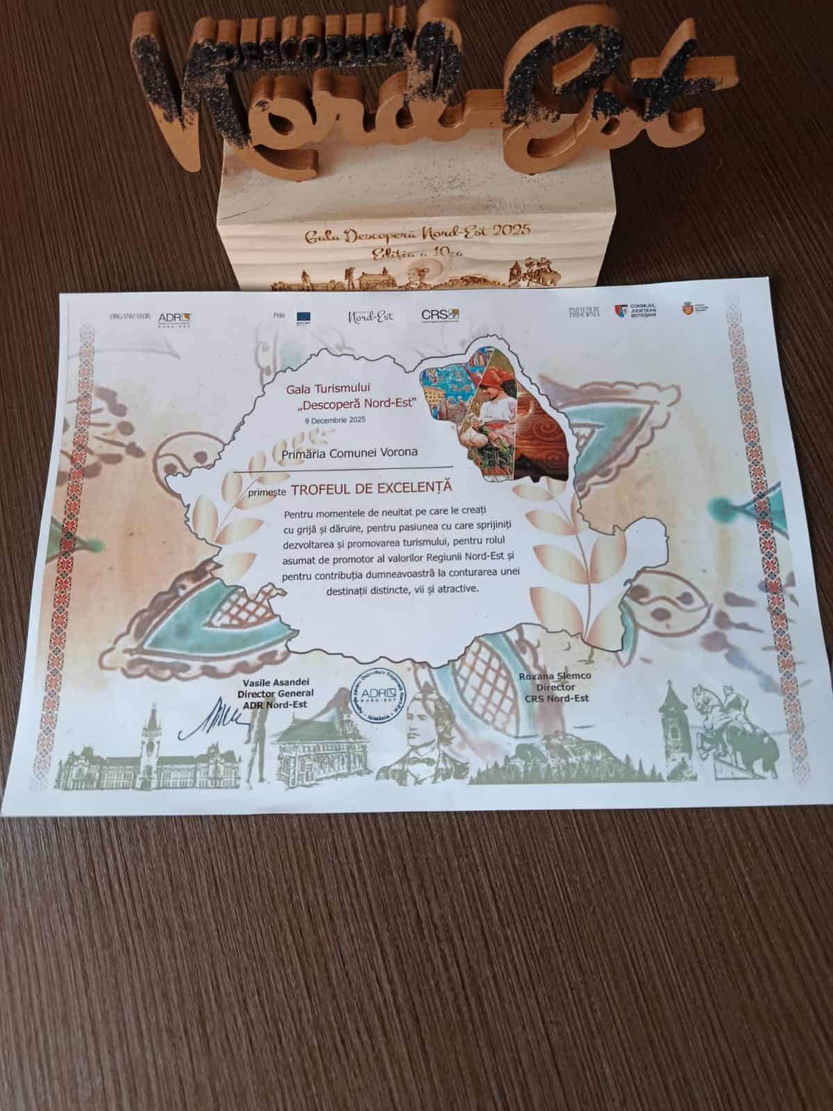Primăria Comunei Vorona, premiată pentru responsabilitate socială la Gala Turismului „Descoperă Nord-Est”