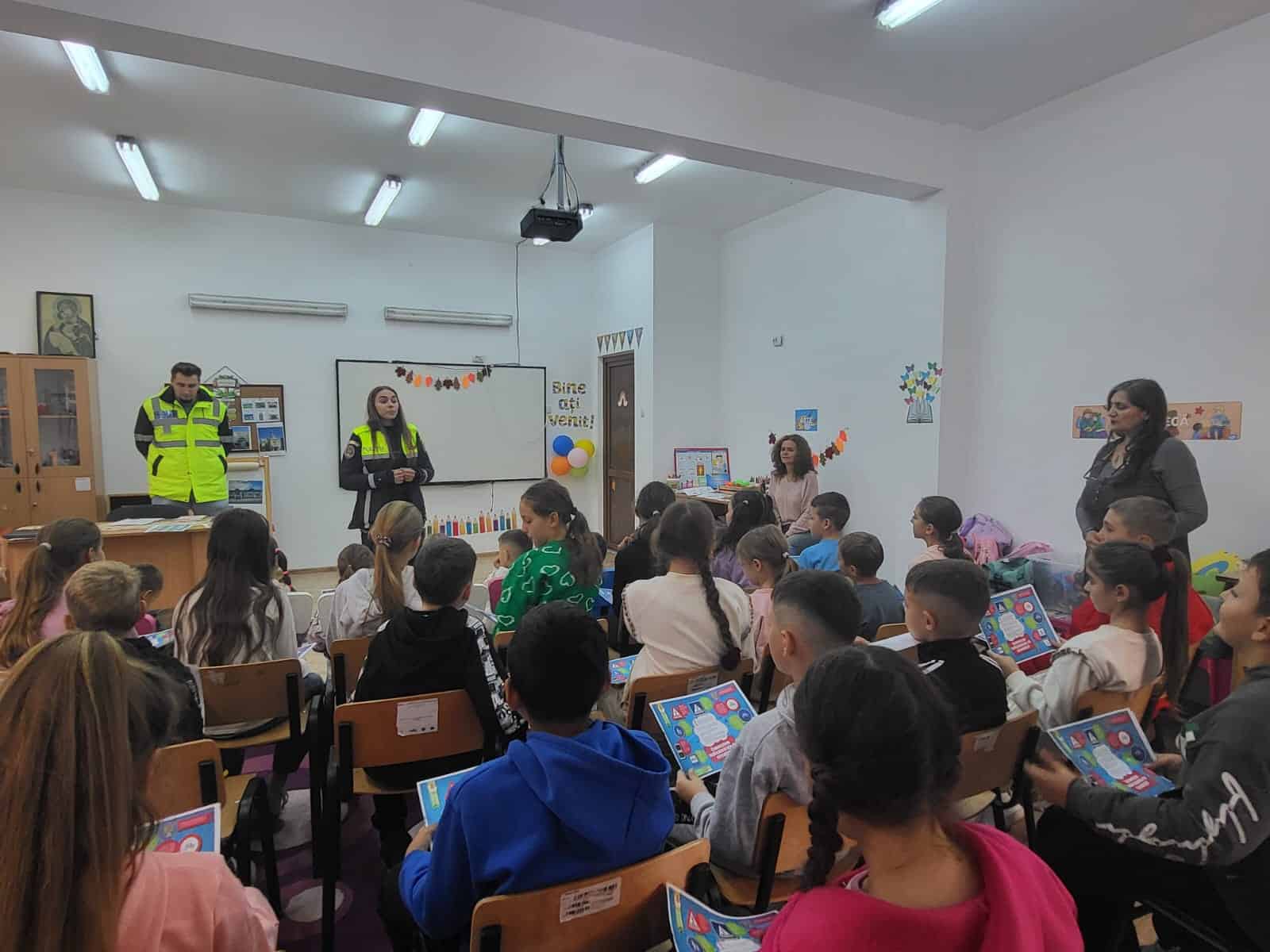 Polițiștii botoșăneni, lecție de siguranță rutieră pentru elevii Școlii din Broșteni
