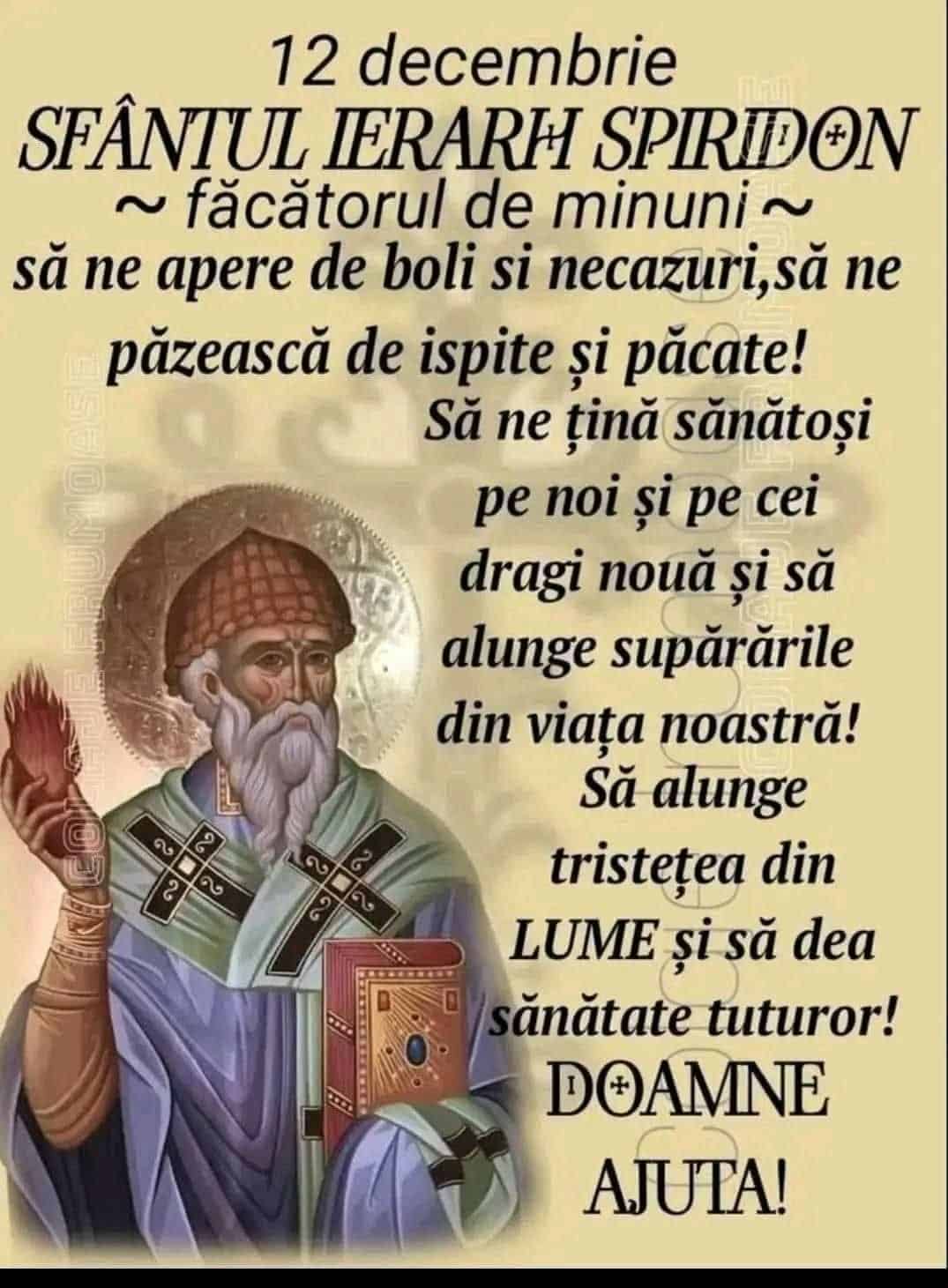 CALENDAR ORTODOX 2025: Sfântul Ierarh Spiridon