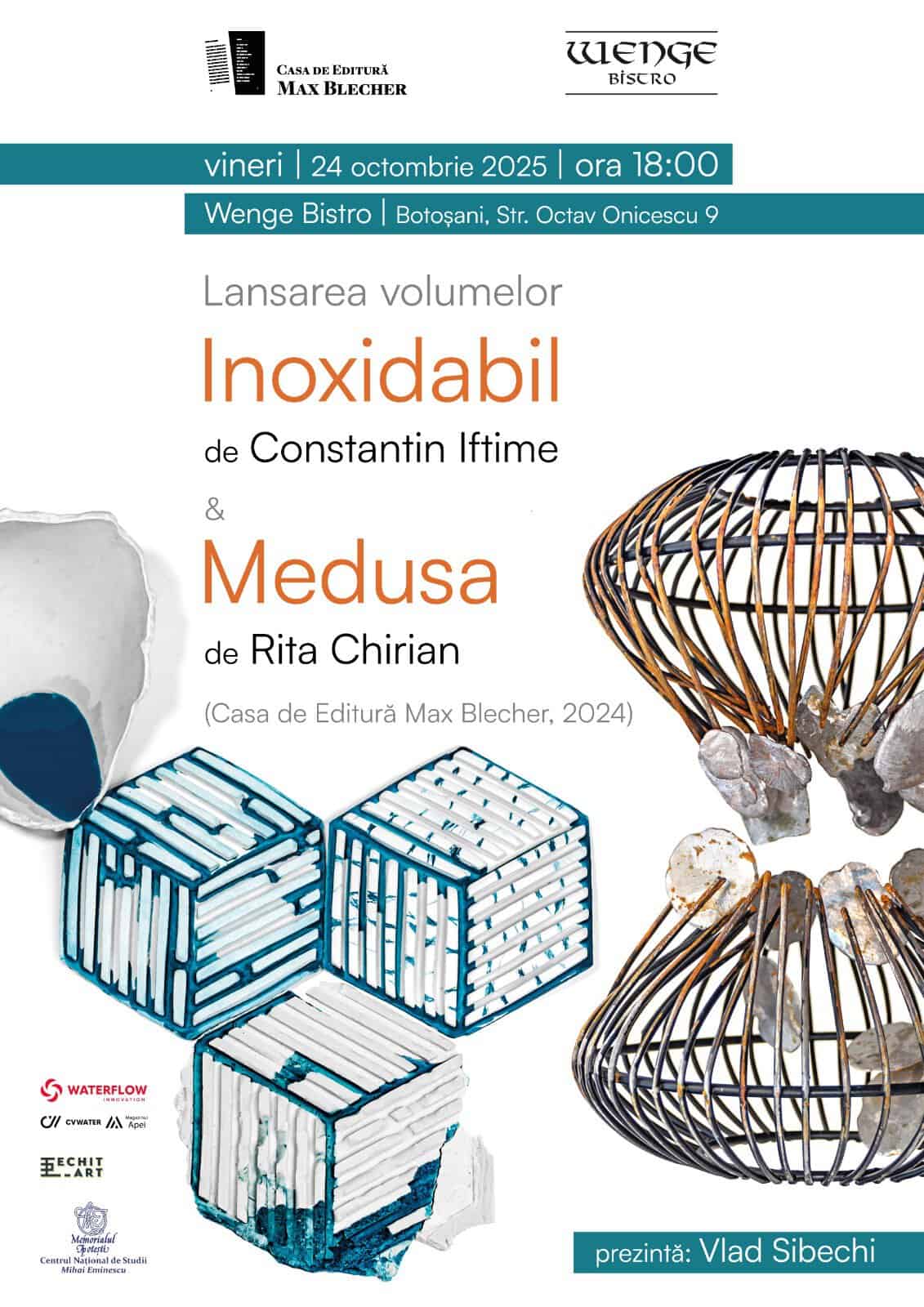 Botoșani: Lansarea volumelor „Inoxidabil” de Constantin Iftime și „Medusa” de Rita Chirian