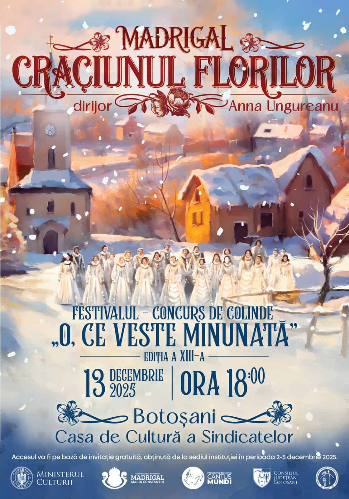 Centrul Județean pentru Conservarea și Promovarea Culturii Tradiționale Botoșani, instituție aflată sub egida Consiliului Județean Botoșani, organizează cea de-a XIII-a ediție a Festivalului-Concurs de Colinde „O, ce veste minunată!”, un eveniment dedicat promovării tradițiilor autentice românești și spiritului sărbătorilor de iarnă.