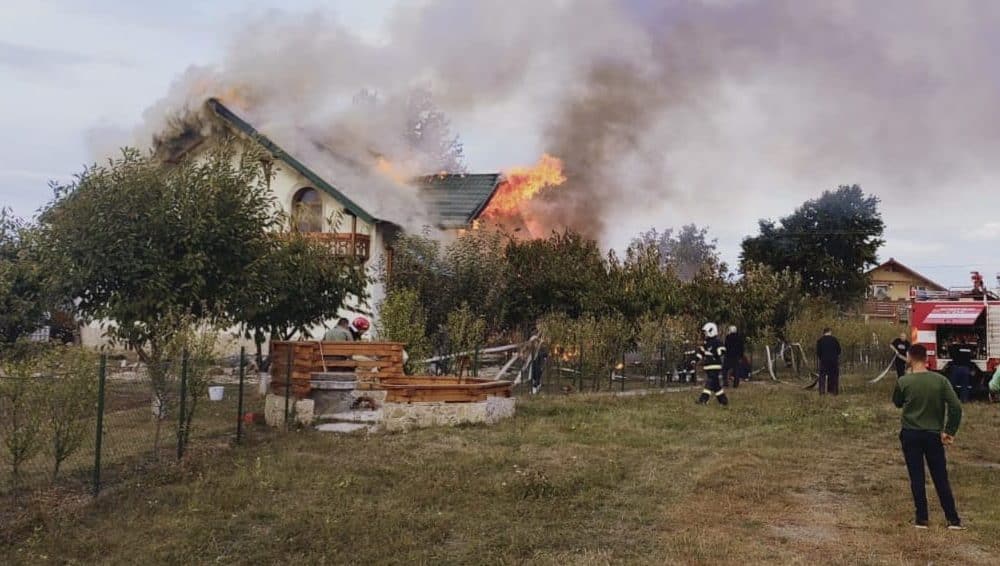 VIDEO: Vilă cuprinsă de flăcări la Huțani. Proprietara a suferit un atac de panică