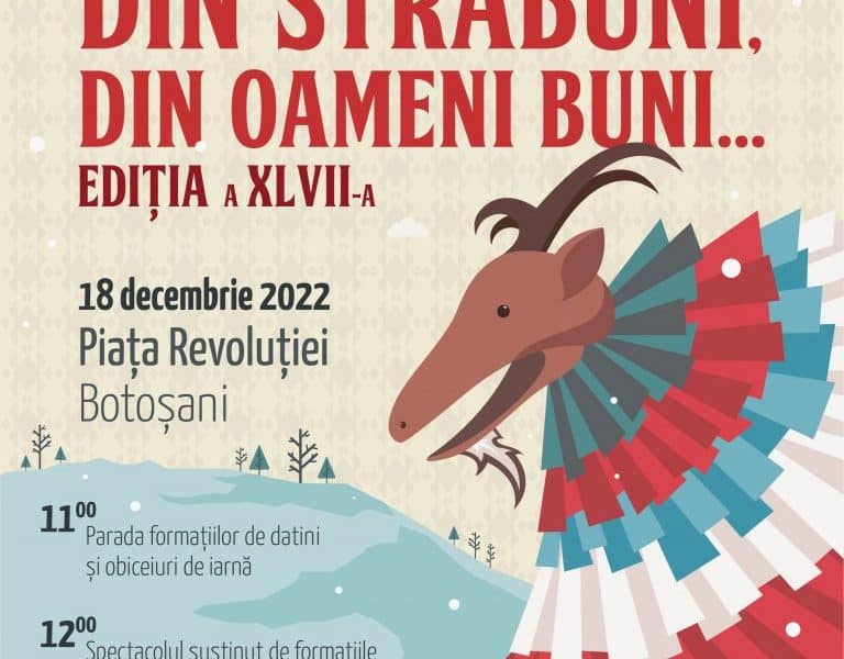 Centrul Județean pentru Conservarea și Promovarea Culturii Tradiționale Botoșani, instituție de cultură aflată în subordinea Consiliului Județean Botoșani, organizează duminică, 18 decembrie 2022, cea de-a XLVII-a...