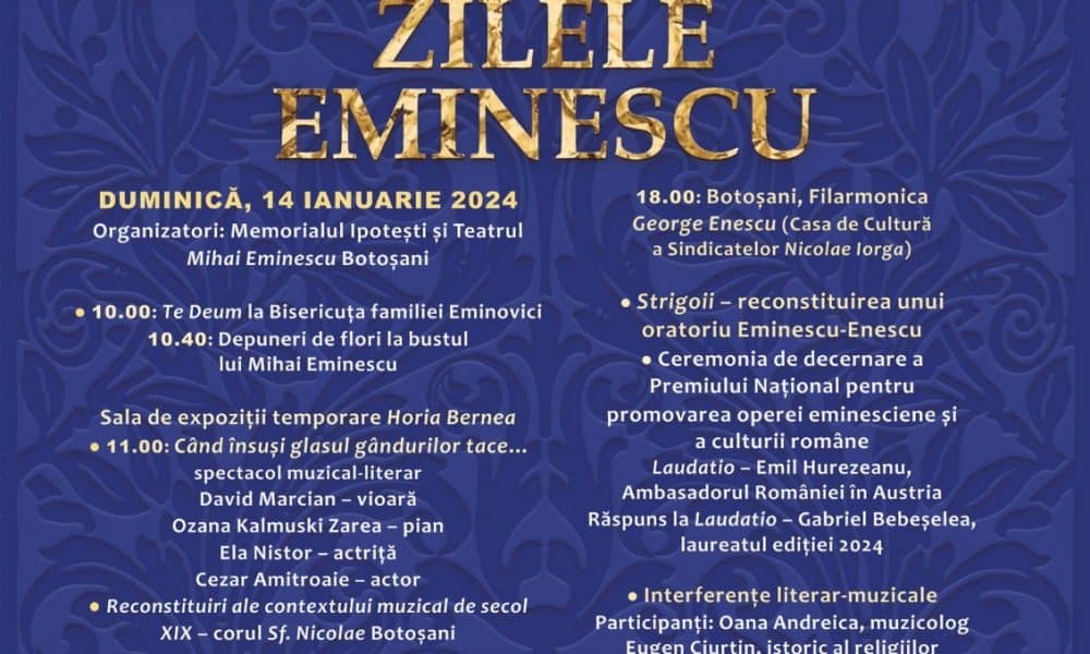 În perioada 14-15 ianuarie 2024, Memorialul Ipotești – Centrul Național de Studii „Mihai Eminescu”, aflat în subordinea Consiliului Județean Botoșani, colaborează cu alte instituții din județ...