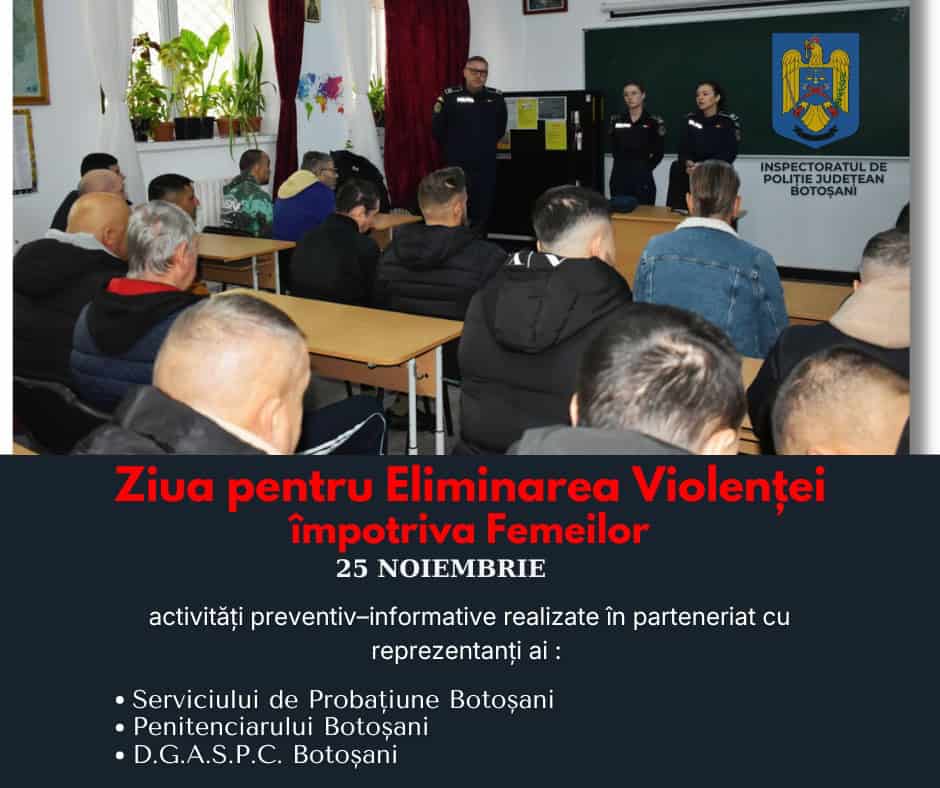 Poliția Botoșani intensifică activitățile de prevenire a violenței împotriva femeilor