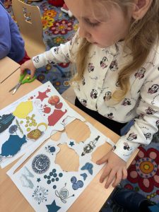 Activitatea de astăzi reprezintă punctul final al unui proces început cu câteva zile înainte. În acest interval, copiii au fost implicați în activități pregătitoare: decupat, lipit, decorat, mototolit hârtie creponată, dar și momente de destindere, precum dansul sau jocurile libere. Toate acestea au contribuit la dezvoltarea abilităților motrice fine, la consolidarea autonomiei și la sporirea dorinței de implicare.