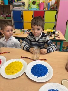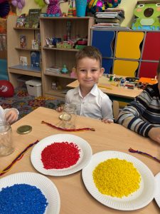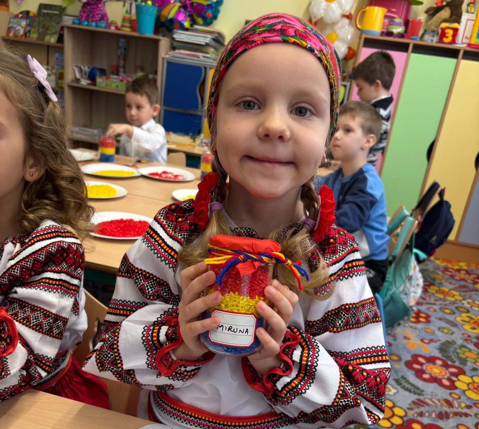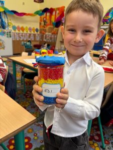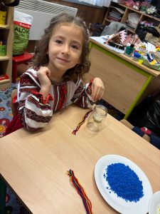 Activitatea propriu-zisă a constat în aranjarea orezului colorat, în straturi, în interiorul borcanelor, respectând ordinea cromatică a drapelului. Apoi, borcanele au fost închise cu capace, decorate prin decuparea și aplicarea hârtiei creponate, legate cu fire de lână și, la final, etichetate cu prenumele copiilor, pentru a personaliza produsul final.