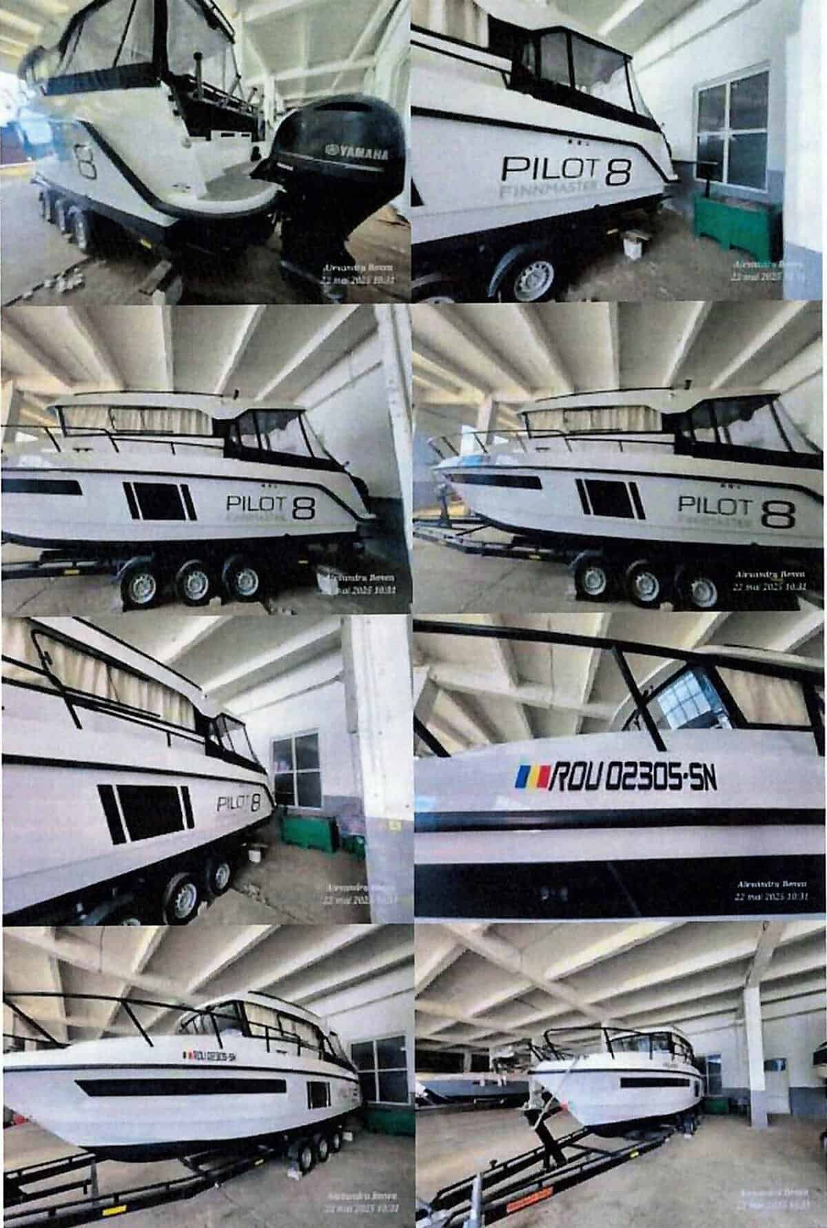 Ambarcaţiune Finmaster Pilot 8.2, motor Yanaga LF, culoare albă, putere 400 CP, an fabricaţie 2022, nr. înmatriculare 2305, nu prezintă uzură, bun funcţional cu certificate valabile – preţ de pornire 644.691 lei, cu TVA inclus