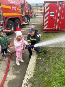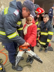 Pe parcursul vizitei, copiii au urcat în autospeciale, au testat furtunul de stingere a incendiilor și au aflat cum intervin pompierii pentru salvarea persoanelor din spații înguste, din mediul acvatic sau din fântâni. Cei mai curajoși nu s-au temut să urce în autospeciale și au testat accesoriile folosite la descarcerare sau la stingerea incendiilor.