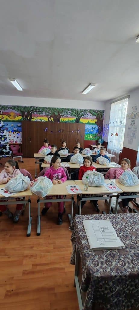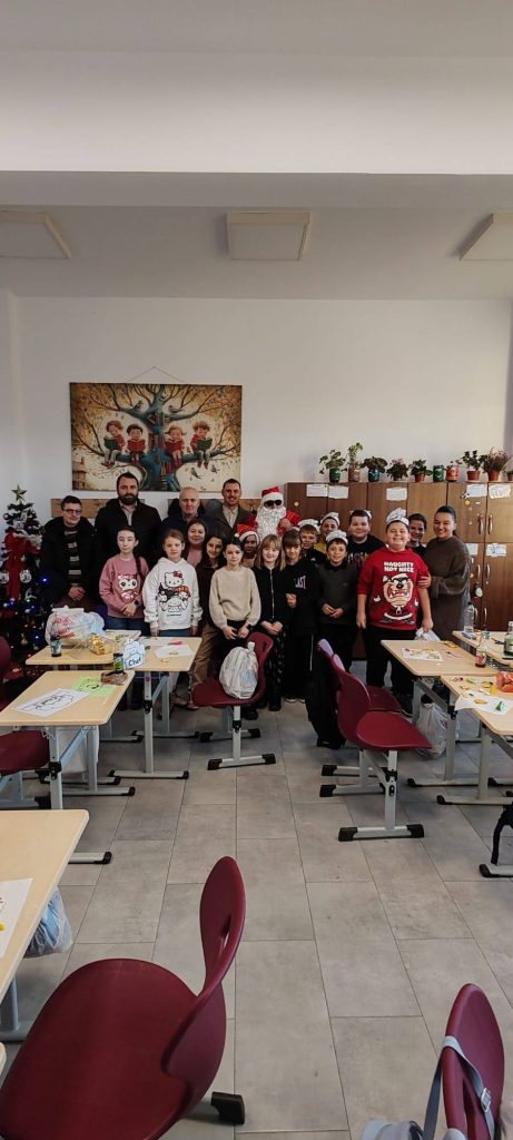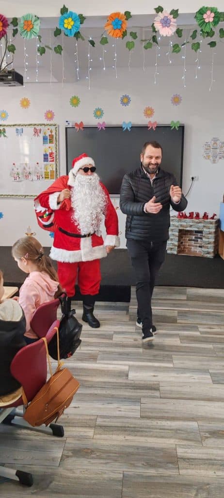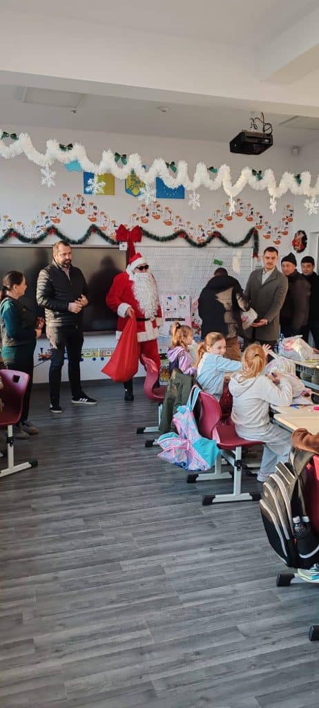 Avrămeni, sub magia Crăciunului: Primarul George Telișcă a adus un Moș Crăciun generos, mare și bun în școlile din comună