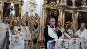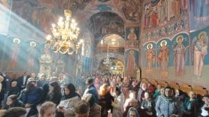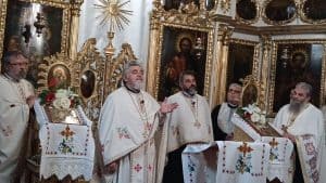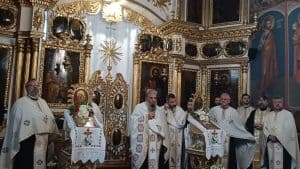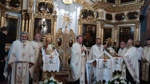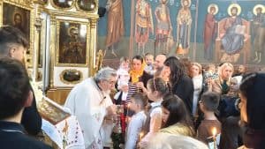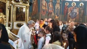 Evenimentul a fost precedat de Sfânta și Dumnezeiasca Liturghie, oficiată de părintele Ștefan Grădinaru, cel care a suplinit slujirea parohiei după plecarea părintelui Dumitru Volentiru, În timpul slujbei, biserica a răsunat de răspunsurile la strană, asemenea unui cor de îngeri, întregind atmosfera de rugăciune. Unul dintre cele mai emoționante momente a fost împărtășirea a zeci de copii, cuminți și evlavioși, care și-au așteptat rândul cu chipurile senine, asemenea unor sfinți.