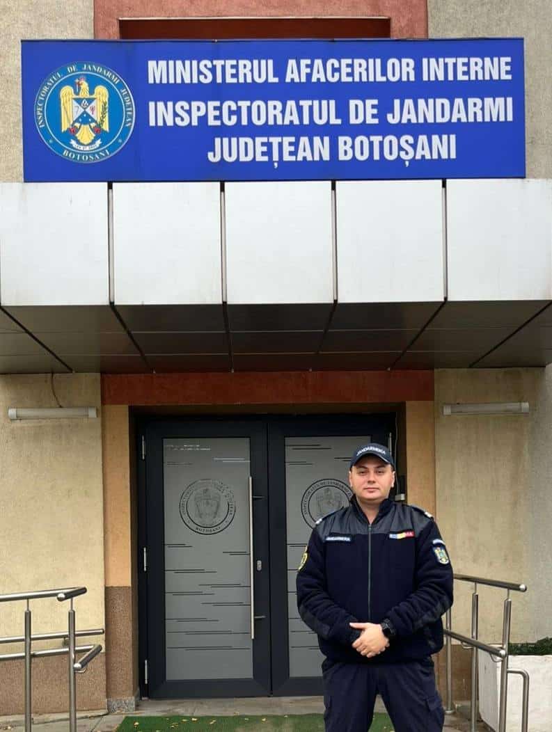 Botoșani: Jandarm cu inimă mare. Bogdan a sărit în ajutorul unui bărbat care s-a simțit rău și a cerut ajutor